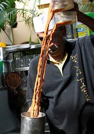 Teh Tarik (n) - literally "pulled tea". Sweetened milk tea that is "pulled" before being served frothing.